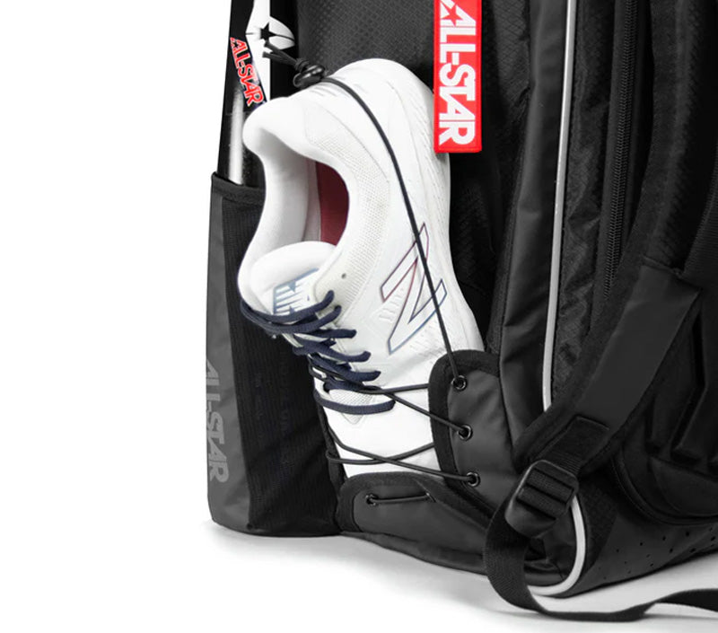 The All-Star MVP Pro catchers bat bag introduces a game-changing feature we never knew we needed: the Cleat Seat. Designed for both convenience and functionality, these specialized compartments provide quick and easy access to your cleats and sneakers while ensuring they stay well-ventilated.