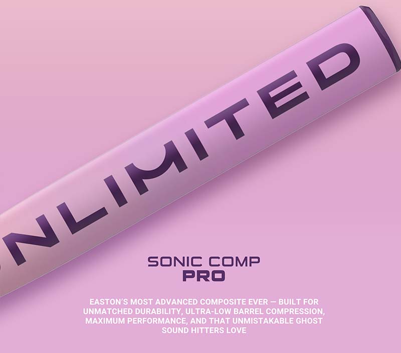 The 2026 Ghost Unlimited uses Sonic Comp Pro, designed for a responsive barrel feel and durability in a one-piece composite build.