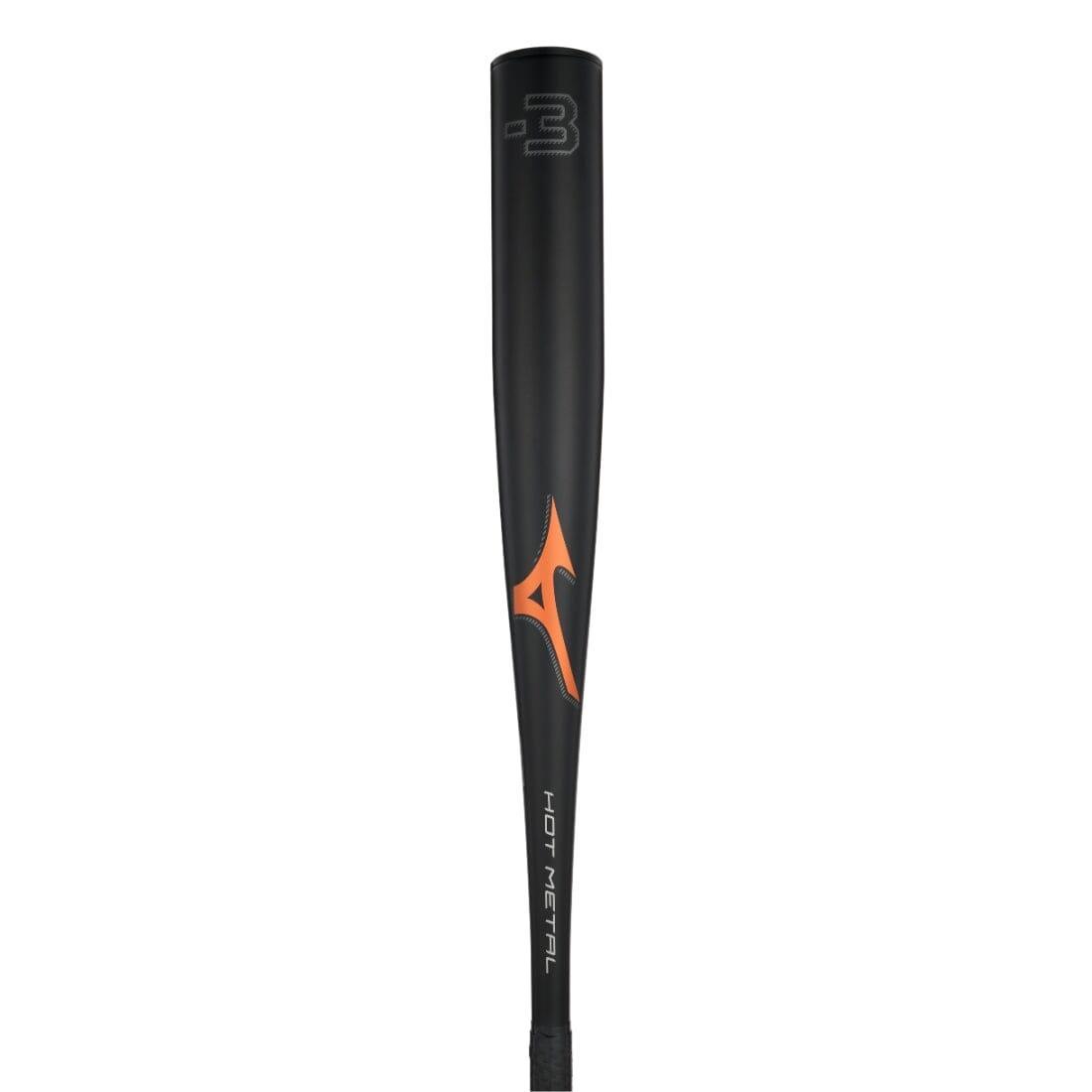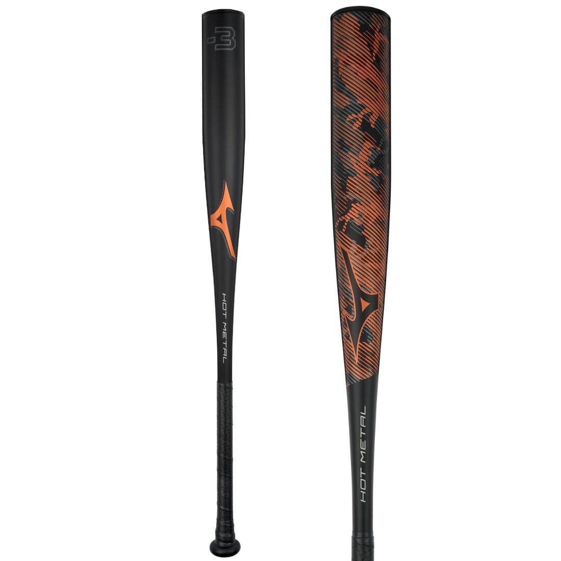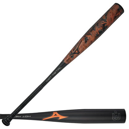 The 2022 Mizuno Hot Metal BBCOR Baseball Bat features the standard 2 5/8-inch barrel diameter, balanced swing weighting, and is legal for play in NFHS and NCAA BBCOR Leagues and Tournaments.
