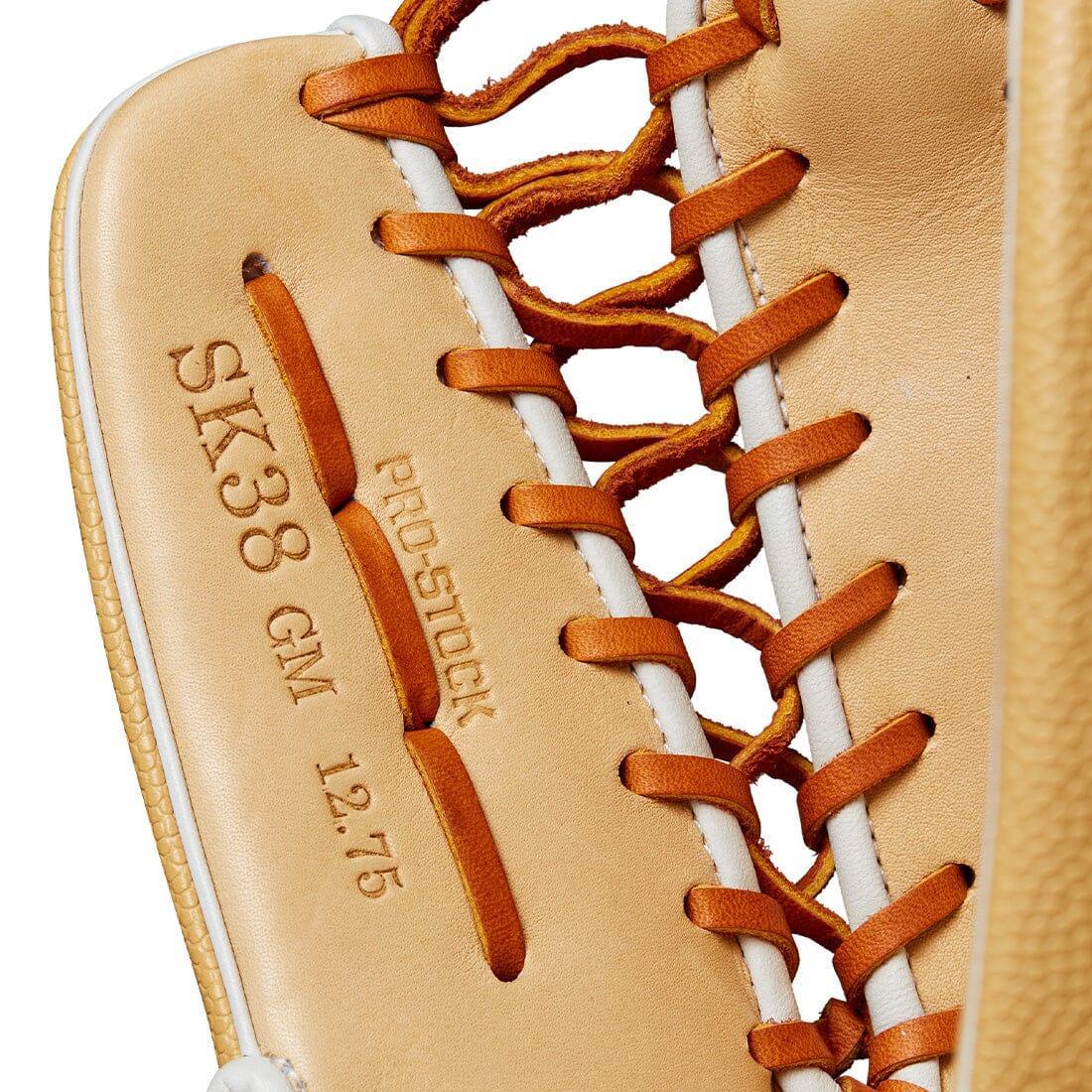 The brand new Wilson Fall A2000 Steven Kwan A2000® SK38 outfield baseball glove features a 12.75-inch length, OT7 glove pattern (Six Finger Web, built with a deeper pocket for elite outfielders), and a blonde/saddle tan classic look.