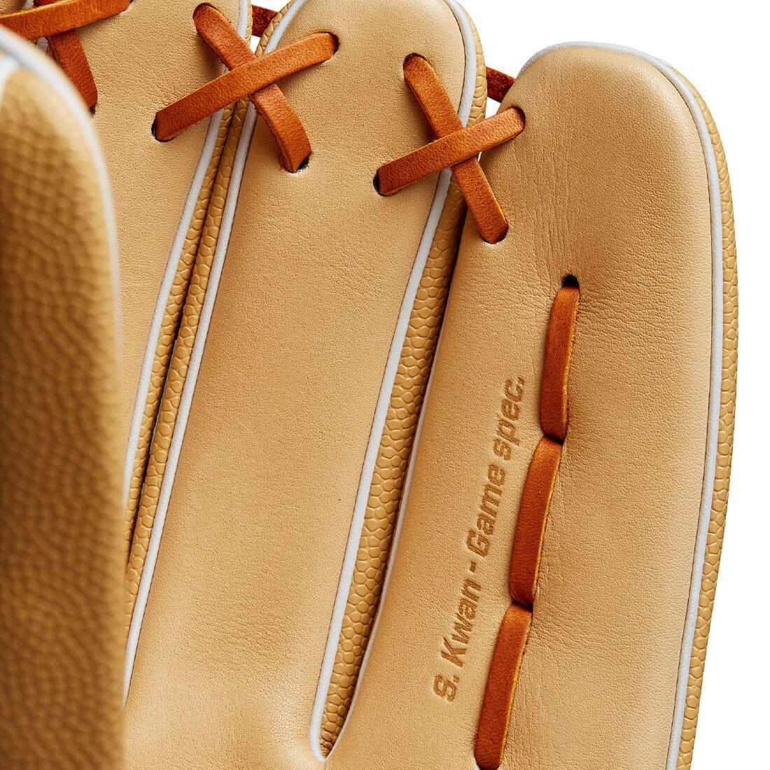 Let your performance do the talking on the outfield grass with the Fall 2024 Steven Kwan A2000® SK38, Kwan’s Game Model glove with a 6-Finger Web to trap sinking line drives or soaring fly balls. Trusted by Kwan during back-to-back award-winning defensive seasons, this A2000 features a Blonde Pro Stock® leather palm for premium feel and lasting performance, and the matching Blonde SuperSkin™ repels moisture while shedding glove weight for improved control. Saddle Tan laces fasten the 6-Finger Web, and White accents complete the timeless look.