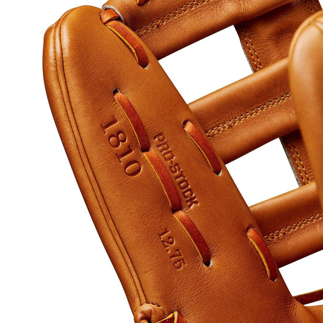 Extend from gap to gap in the grass with the Glove Day Series A2000 1810, a 12.75” outfield baseball glove engineered for a secure fit, especially when worn with two fingers in the pinky stall. The modified wrist strap and adjusted pinky stall maximizes comfort while reaching for tailing line drives or firing the ball back to the infield, and the full Pro Stock® leather build delivers a premium feel. Modeled on the same A2000 1810 gloves Wilson Master Glove Craftsman Shigeaki Aso delivers to big league camps and players like Julio Rodriguez each spring, this 12.75” glove pairs classic style with premium performance.