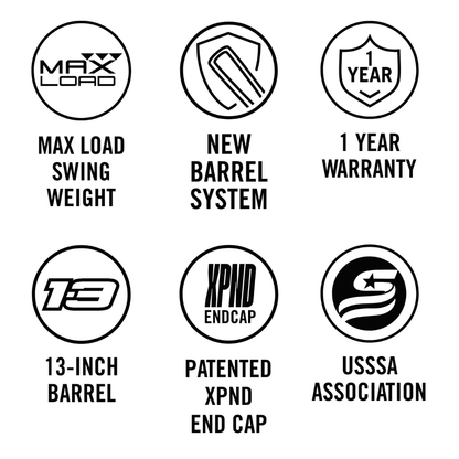 The .75 oz endload design packs extra momentum into every swing, making it ideal for power hitters aiming for game-changing hits. Featuring a 13" barrel, the Double-Wall Barrel System and patented XPND End Cap work together to create an optimized sweet spot and enhanced barrel performance, ensuring maximum power where it matters most.