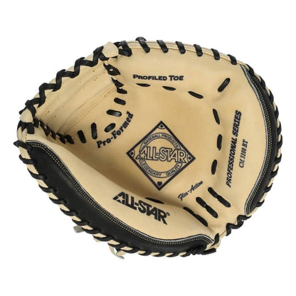 The All Star commitment to innovation, advanced technology, outstanding craftsmanship and quality service keeps them at the forefront of the industry. No matter what level of ball you play, you need quality equipment and the All Star Professional Series delivers by exceeding player's expectations. This All Star Pro Series CM3100BT Catcher's Mitt is designed for fast break-in and hard competition through even the most grueling of seasons and games. The Japanese US Steer Hide Leather, and Heavy Duty Raw Hide Lacing are durable, strong, and are some of the most advanced materials on the market. This catcher's mitt includes a special extended pocket to help make catching borderline effortless. The Padded Wrist Guard also offers prime protection and comfort that players may not be accustomed to.  Whether you're a Pro or a Rookie, let All Star help revolutionize your game