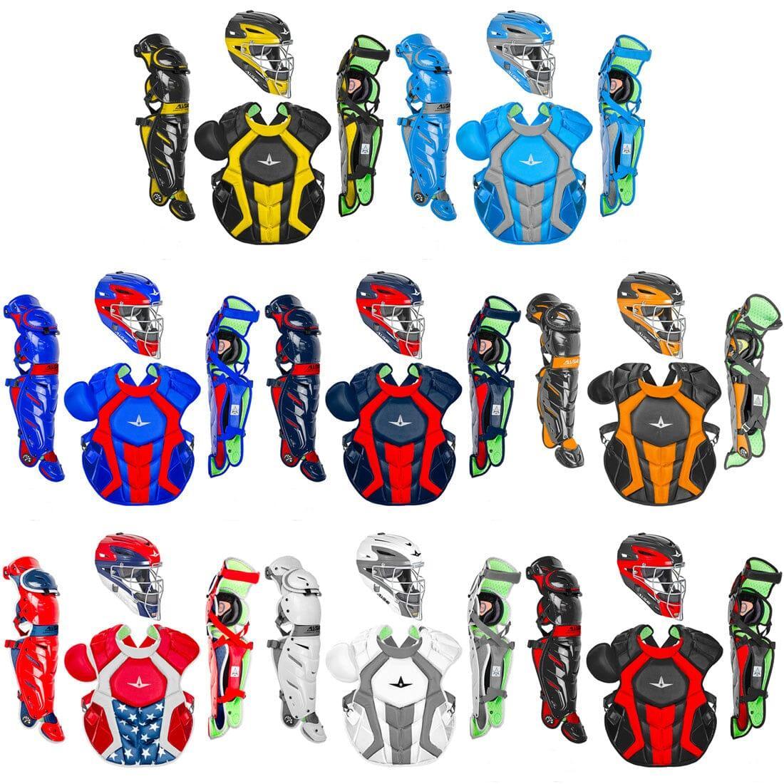 Get in the squat looking clean with All-Star S7 Axis Adult Baseball Catcher's Kit. The CKCCPRO1X Two Tone Adult System Seven Axis catching kit includes all the top elite gear players are looking for in a new two tone color scheme.