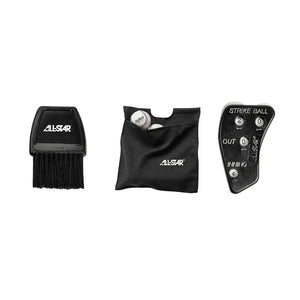Full accessory kit for umpires includes ball bag, counter, and plate brush.