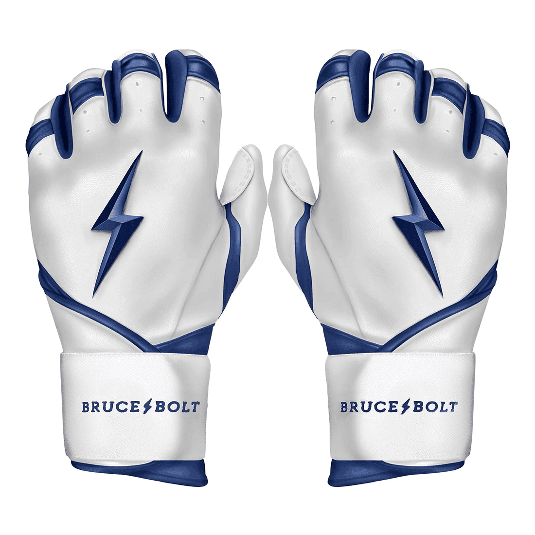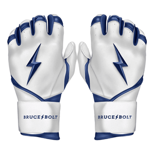Each pair of Bruce Bolt Premium Pro Chrome Series Long Cuff Batting Gloves are handmade by skilled craftsmen using only the highest quality 0.9mm Cabretta leather and stitching techniques which makes Bruce Bolt gloves buttery soft but more durable than any other glove on the market.