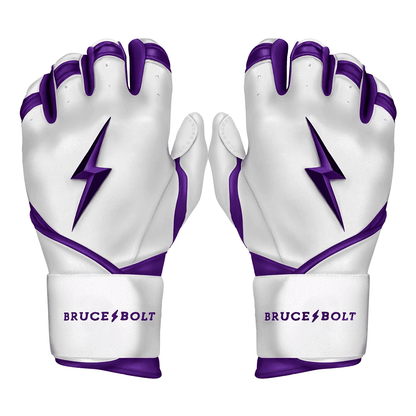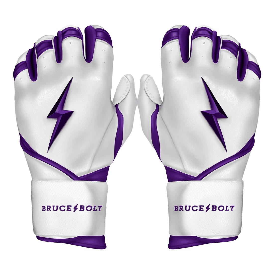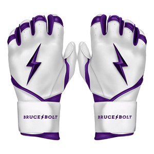 Each pair of Bruce Bolt Premium Pro Chrome Series Long Cuff Batting Gloves are handmade by skilled craftsmen using only the highest quality 0.9mm Cabretta leather and stitching techniques which makes Bruce Bolt gloves buttery soft but more durable than any other glove on the market.