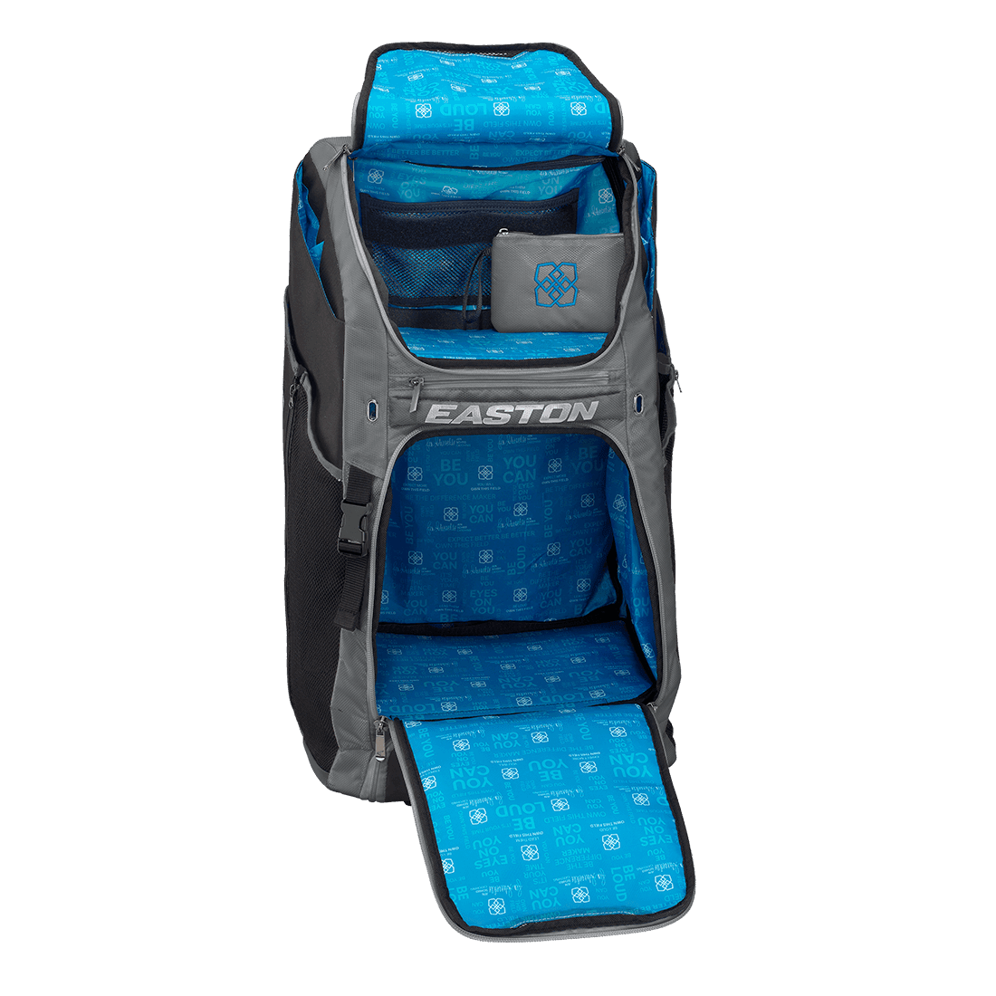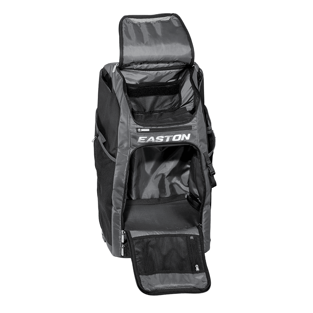 Easton’s brand-new Catchers Wheeled bag provides all the essentials and functionality a catcher needs without sacrificing style. Featuring two mesh side pockets to hold leg guards and an exterior loop buckle to stash your glove or helmet, frees up space inside the bag for other equipment and necessities. The main compartment contains two removable, heavy-duty shelves for organization or remove the shelves to create one large main compartment. The telescopic handle and rugged inline wheels help you easily transport your gear effortlessly across any terrain. This model also includes a small removable bag for personal items.
