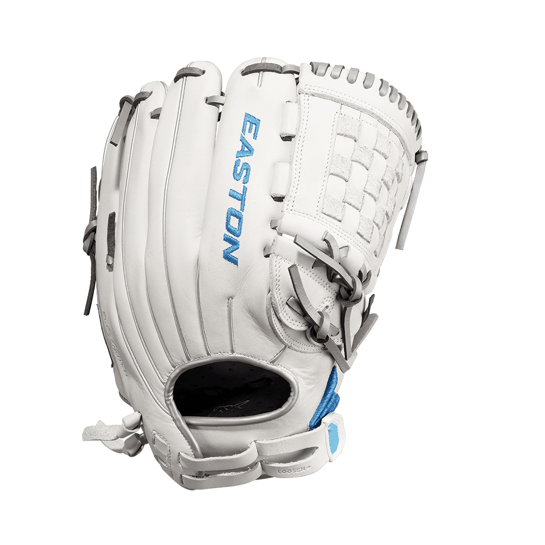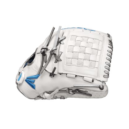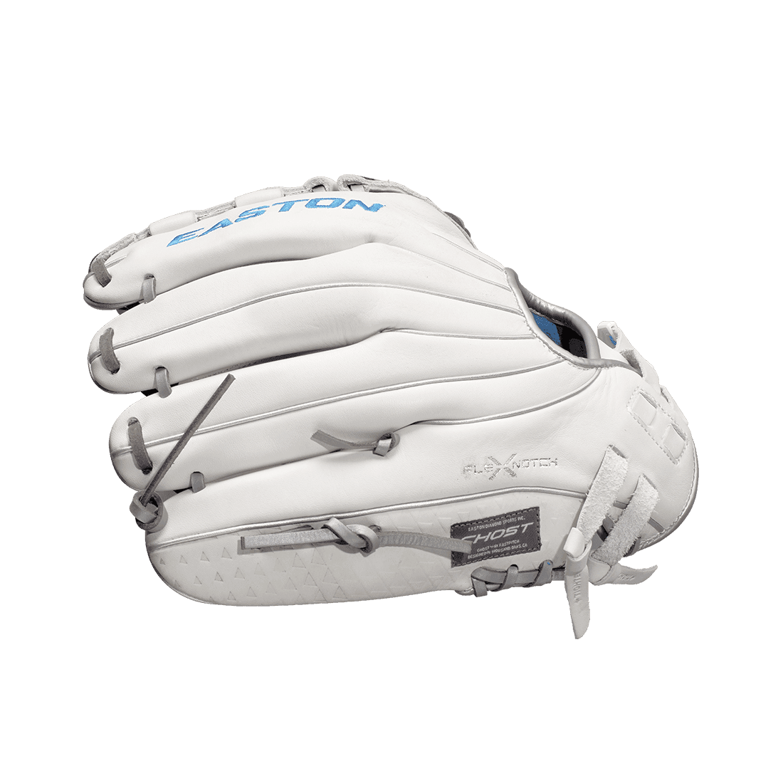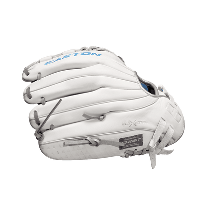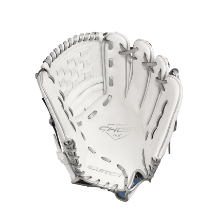 Easton's Ghost series is a symbol of elite fastpitch play. The Ghost NX 12-inch Fastpitch Pitcher/Outfield glove fits right in. These gloves were crafted in gameday-specific patterns designed for smaller hands and perfectly suited to the fastpitch game. On the outside, the Game Ready Diamond Pro Steer leather and Flex Notch closure system make this glove super soft and easy to handle right away. The Quantum Closure System on the glove back ensures a perfect fit for every player, and the interior Ax Suede microfiber lining creates unmatched comfort and durability. Also, the striking white-and-blue colorway and professional-grade silver metallic rawhide lace are sure to turn heads. Hit the field with the Ghost NX 12-inch Fastpitch Pitcher/Infield Glove and master the softball diamond. Get yours today!
