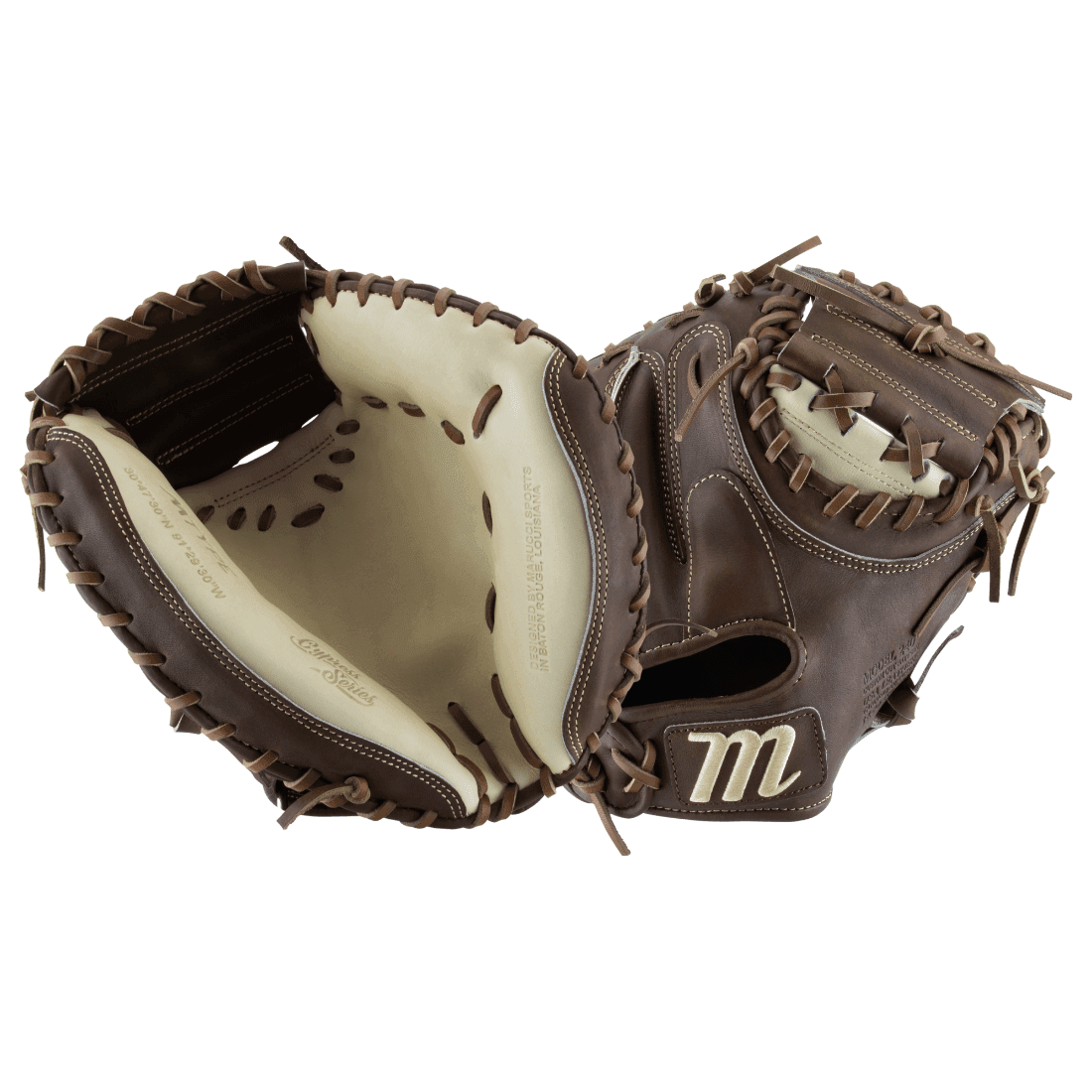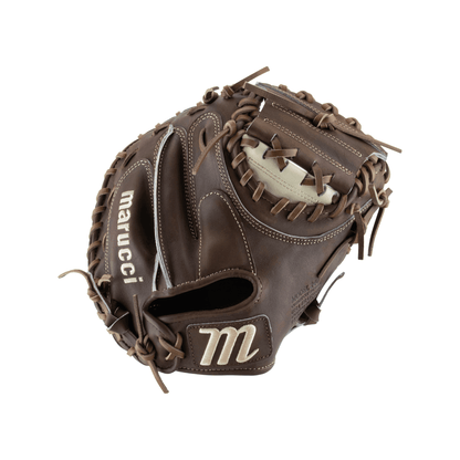 The Marucci Cypress 34" Baseball Catcher's Mitt is expertly crafted to meet the high demands of catchers. With a 34" circumference and a solid closed web, this mitt provides a substantial catching area, making it ideal for securing fastballs, framing pitches, and handling the toughest throws from the field. With a fantastic Gumbo and Camel colorway and built from premium Japanese tanned steerhide leather, this mitt promises increased durability and improved structure, ensuring it stands up to the rigors of intense gameplay.