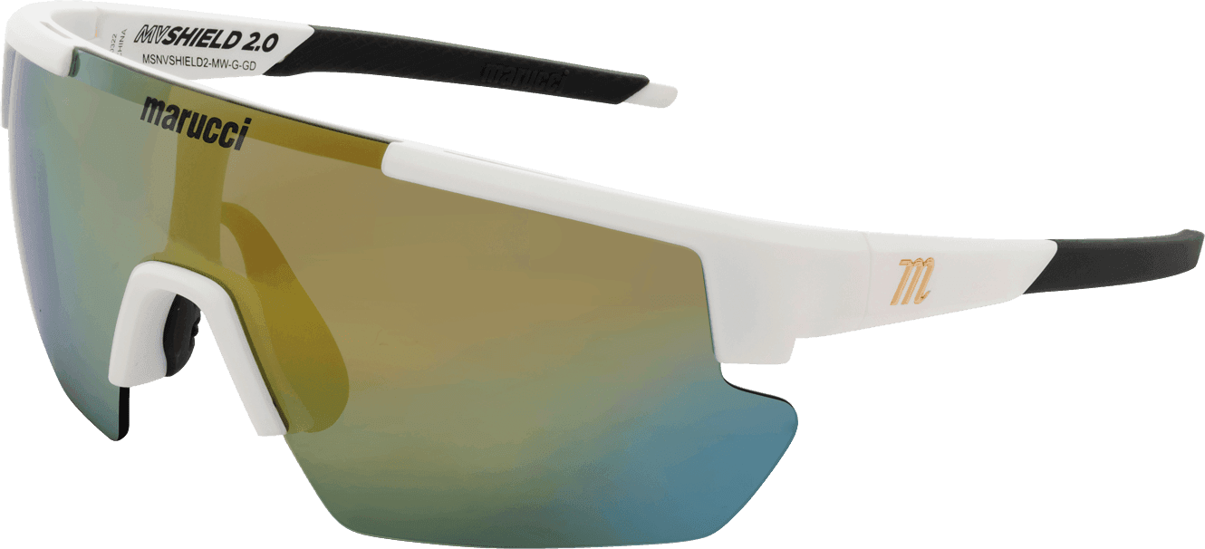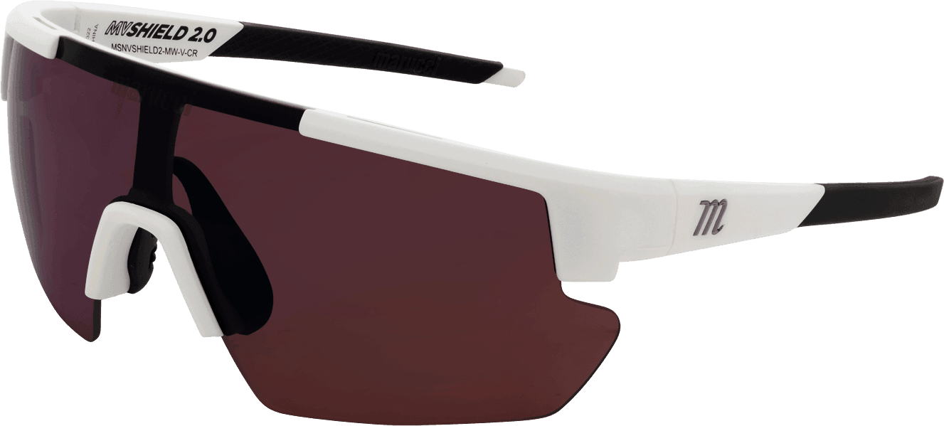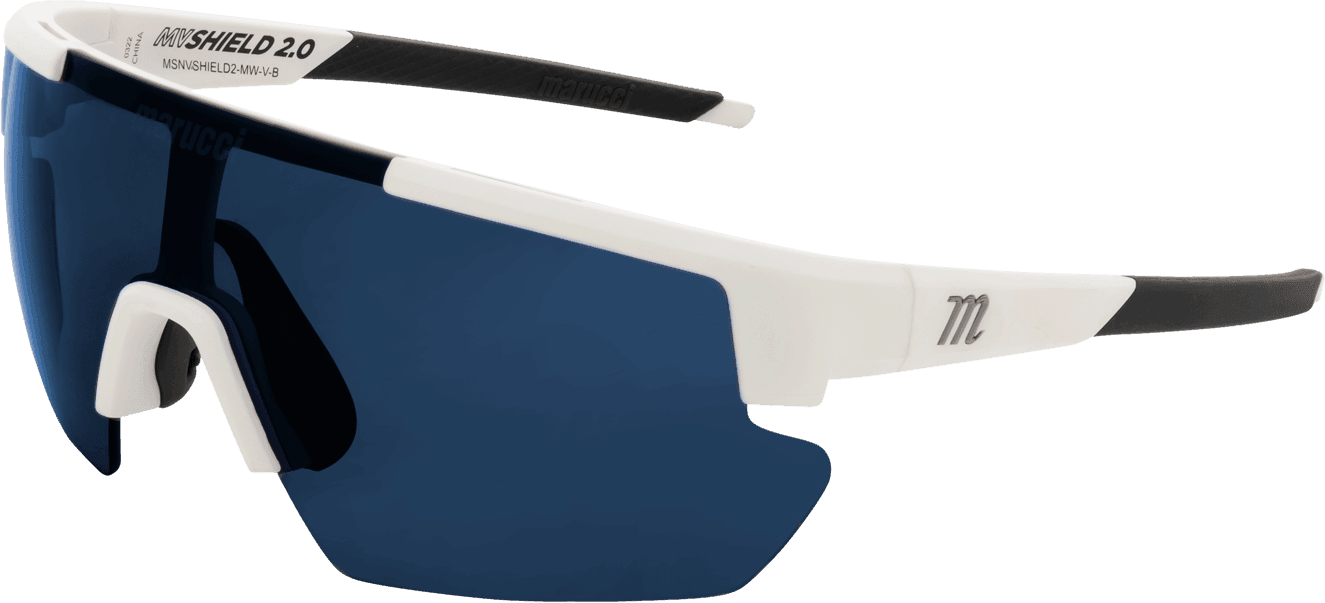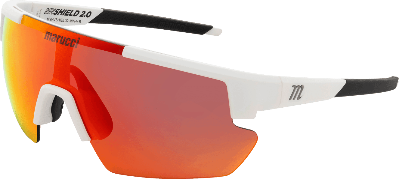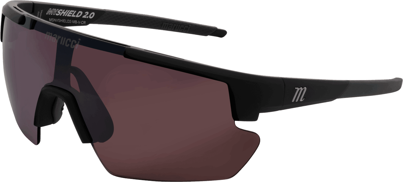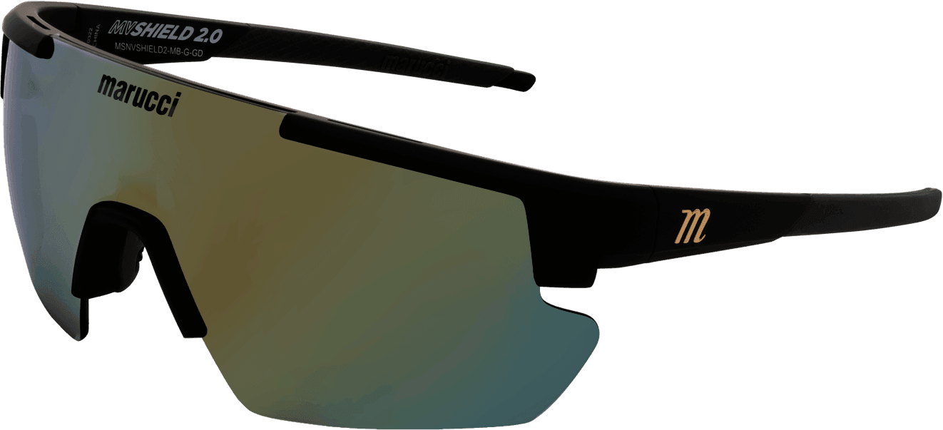Marucci Shield 2.0 youth performance sunglasses are made specifically for on-field use with lenses produced by Carl Zeiss Vision, engineered to enhance clarity, improve visibility, and balance color perception to create higher performing on-field sunglasses. The Shield's single-lens design allows for full range of view on the field and includes additional interchangeable lens for easy personalization.