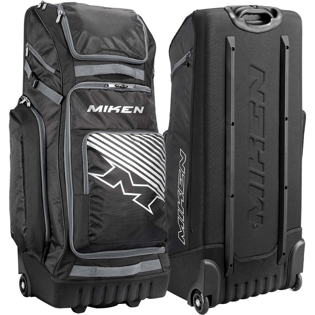 The Miken deluxe slowpitch wheeled bag is the ultimate bag for traveling with all your gear. It features a large main compartment to keep all your gear protected. It also has a center padded compartment large enough for 6 bats, making it perfect for players who carry multiple bats to every game! In addition, it's equipped with a top vented compartment ideal for a helmet, ball glove or cleats. Its 2-piece molded base & back allows the bag to stand upright while also protecting the bottom. If you're a player who prefers a wheeled bag, look no further than our deluxe slowpitch wheeled bag!