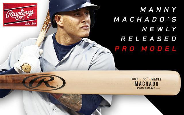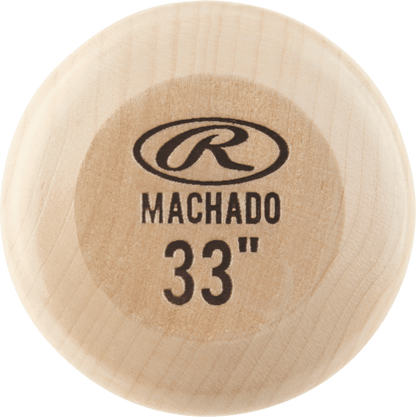 The Rawlings Pro Label Manny Machado Maple Wood Baseball Bat features a 15/16 inch handle diameter, 2 3/8 inch barrel diameter, natural wood colorway, and is the game day model of MLB Player Manny Machado.