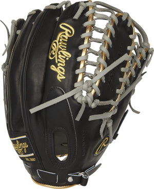 Crafted from flawless kip leather, the Rawlings 2021 Pro Preferred 12.75-inch outfield glove offers unparalleled quality and performance. It's built using the same pattern used by perennial MVP candidate Mike Trout. This unique glove features a classic black design along with eye-catching gold binding, and grey lacing.