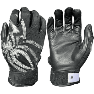 LIMITED EDITION "Black Mamba" PRIZM model. The Black Mamba features a smooth & soft black leather palm, flexible polyester top hand fit, triple reinforced wrist strap and our Spiderz logo in a faux snake skin material.