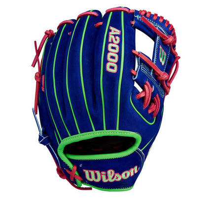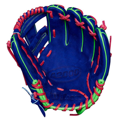 Buttery soft with buffed Royal Blue Pro Stock® leather, this A2000 1786 boasts a rich feel with the same rugged durability infielders expect. Steal the spotlight with Neon Green and Flamingo Pink accents.