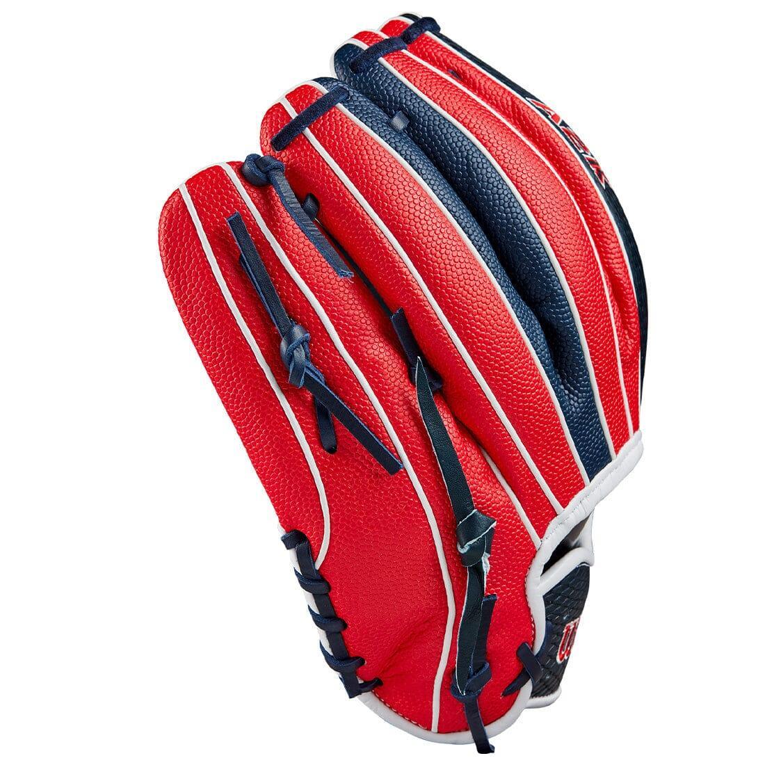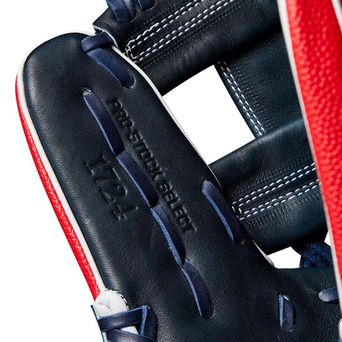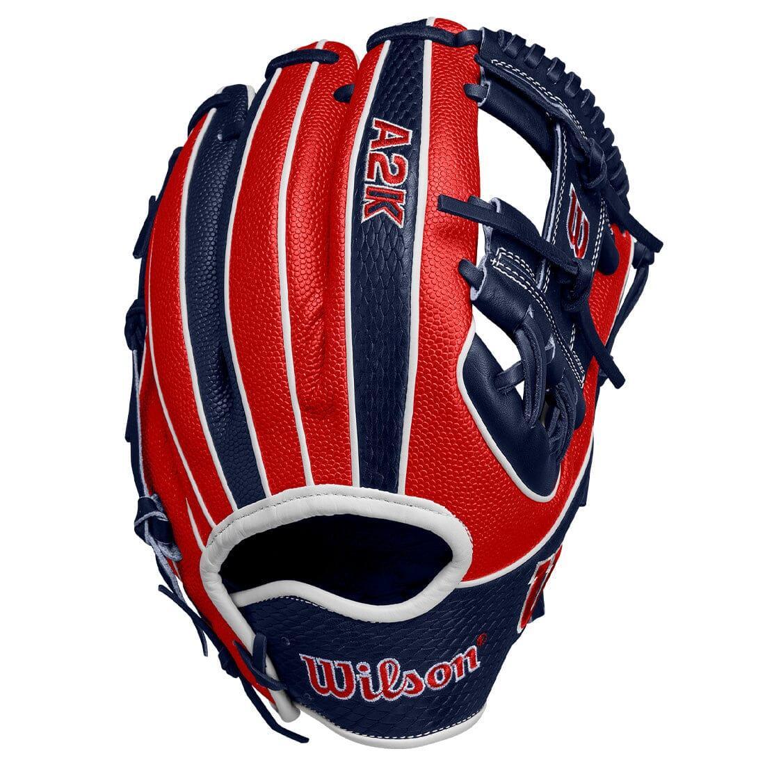 This new Wilson A2K offers a 11.75” infield model glove with Navy Blue Pro Stock® Select leather, Red & Navy SuperSkin™ and a modified wrist strap for a secure fit.