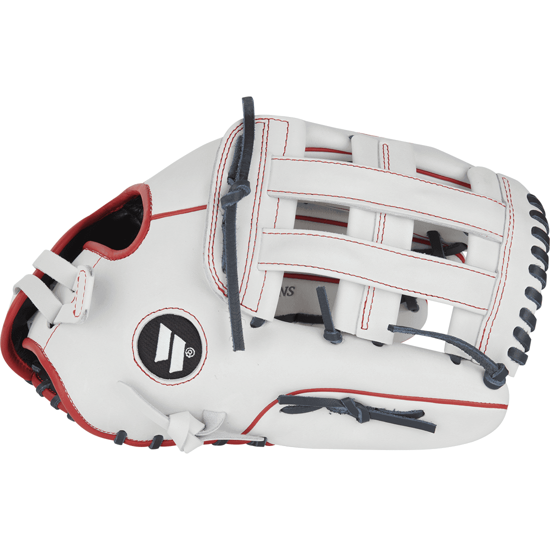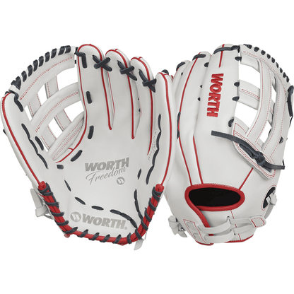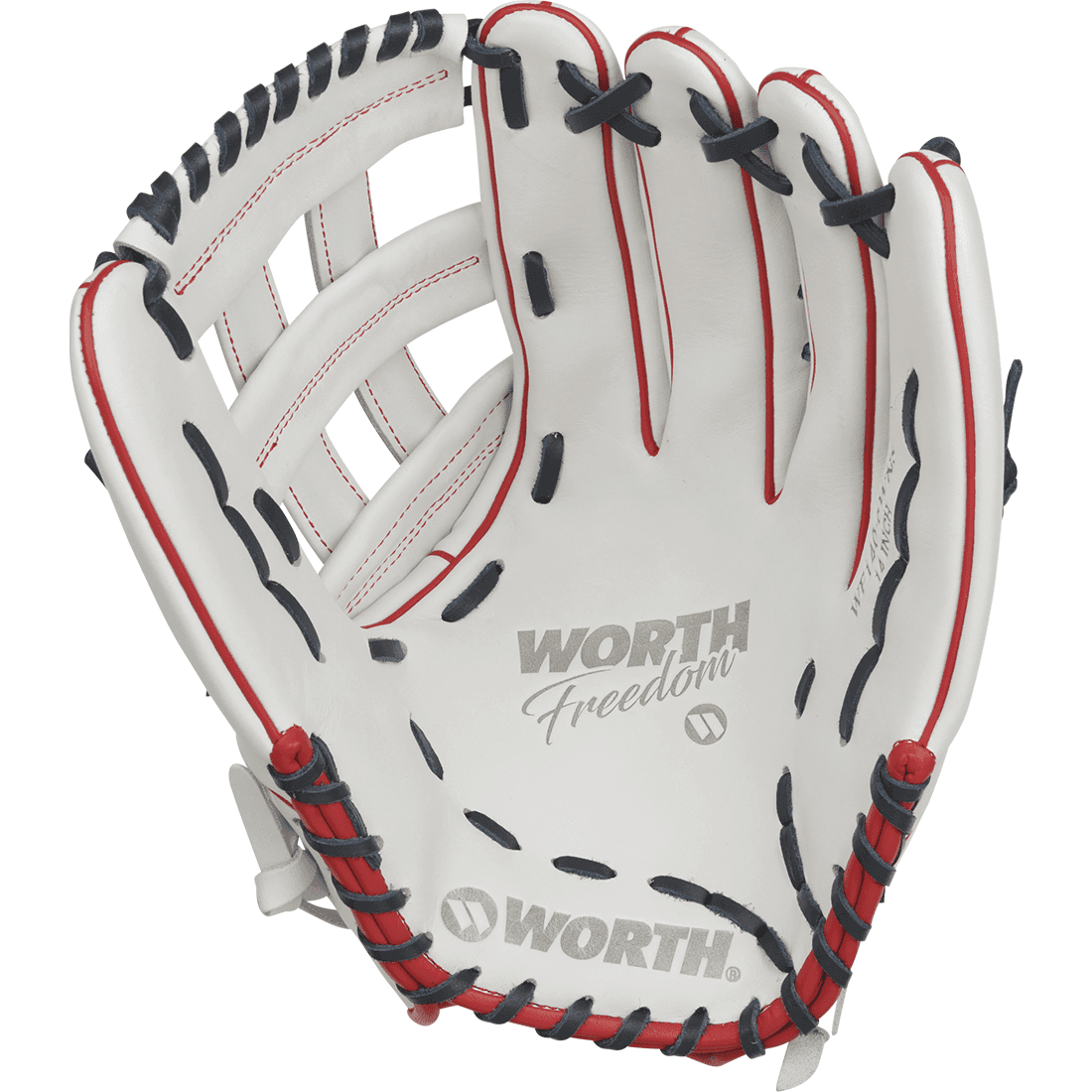 Dominate the diamond with this Freedom white/black slowpitch softball glove. Constructed from pro grade leather, these new Freedom gloves are the best glove for any elite player. We meticulously crafted each size in patterns designed specifically for a 12" softball so you can easily break-in the perfect pocket for a softball.