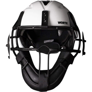 The Worth Legit Slowpitch Softball Pitcher's Mask is expertly molded with style and impact resistance in mind. Its ventilation system promotes air flow for comfort and the adjustable dial ensures a superior fit. This mask is designed specifically for slowpitch softball players, with a lightweight design and aluminum cage for added comfort. The white satin/clear coat with decal design gives a sleek and professional look. One-size-fits most: 6 1/2" - 7 5/8" sizing.